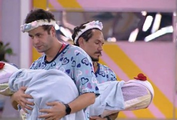 Cumprindo o Castigo do Monstro no BBB 22, Gustavo e Eliezer ninam o bebê ao som de músicas para d...